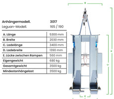 Der LEGUAN Spezialanhänger ist optimal auf die Hubarbeitsbühne abgestimmt und erspart gesonderte Transportmittel. Die Ladungssicherung erfolgt schnell mit Ketten und Gurten. Das Be- und Entladen der Hubarbeitsbühnen ist mit den maßgeschneiderten Rampen ein Kinderspiel.