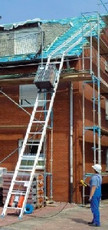 Aluminium-Leiteraufzug für Schrägeinsatz - einsetzbar mit Fahr- oder Kippschlitten. Grundgerät inkl. 1 x Normalschlitten, 1 x Verlängerungen 2,00m, 1 x Kopfstück 0,30m sowie einem Handtaster