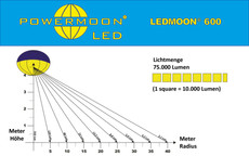 Beleuchteter Radius: 28m. Sie beleuchten so eine Fläche von ca. 2400m² tageslichtähnlich