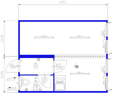 1 Kleinküche mit Kühlschrank, Spüle, 5 l Untertischspeicher, 2 Kochplatten