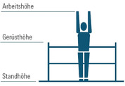 Sicheres Betreten einer nächsthöheren Plattform aufgrund vormontierter Doppelgeländer mittels 3-T-Methode.