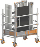 Sicherer Auf- und Abbau durch nur eine Person aufgrund Mitnahme der kompakten Bauteile von Ebene zu Ebene mittels SoloTower- Montagehaken.