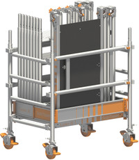 Der SoloTower von Layher ist das kleine Fahrgerüst, das schnell, sicher und einfach von nur einer Person bis zu einer Arbeitshöhe von 6,15 m aufgebaut werden kann.