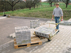 Problemloser Transport von stahlbandumreiften oder losen Verbundpflastersteinen, Bordsteinen, Platten oder dergleichen
