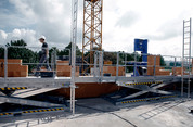 Durch drei baugleiche Auszüge ist die Bühnenlänge auf beiden Seiten jeweils stufenlos bis zu 1 m verlängerbar, optimale Anpassung an alle Grundrisse. Rutschfester geschraubter Alu-Raupenblech-Belag. Wir weisen ausdrücklich darauf hin, dass gemäß C-NORM EN 280 ausnahmslos alle Maurerarbeitsbühnen nur MIT Geländer eingesetzt werden dürfen.