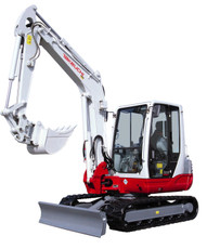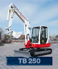 Der Takeuchi Kompaktbagger der 200er Serie sind serienmäßig mit Powertilt und hydraulischen Schnellwechsler ausgestattet.