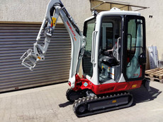 Minibagger TB216/TB216S / Breite 0,98 - 1,37 m. Tieflöffel mit 400 und 500 mm, Grabenräumlöffel 1.000 mm starr und schwenkbar, Abbruchhammer 110 kg, Roderechen 400 mm.