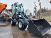 Radlader m. Strassenzulassung; Ausstattung Standardschaufel ohne Zähne sowie Palettengabel.