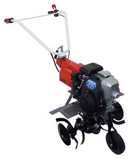 Die starke Motorleistung des Honda GX 160 treibt diese Hacke auch durch schwierige Böden. Der Kupplungsgriff für mechanisches Ein- und Auskuppeln des Antriebs ist ergonomisch angeordnet und macht das Bedienen leicht.