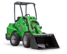 Anbaugeräte: Schaufeln mit und ohne Zähne, Palettengabel, Bodenplaner, Erdbohrer, Baumstupffräse, Erdkanalfräse, Häcksler, Heu/Silo-Allroundgreifer, Hochdruck/Straßenreiniger und Umkehrfräse.