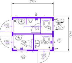 3 x WC mit Handwaschbecken und Ablage