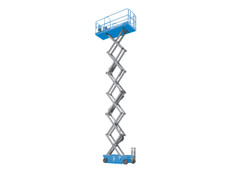 Scherenarbeitsbühne 13,75 m Arbeitshöhe Plattformverlängerung 88 cm Geländer abklappbar Höhe abgekl. Geländer 180 cm integriertes Ladegerät