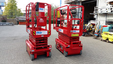 Scherenarbeitsbühne 5,6m Arbeitshöhe Plattform verlängerbar von 1,29m auf 1,89m integriertes Ladegerät