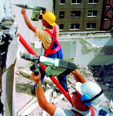 Mit SDS-max Aufnahme incl. Spitz- u. Flachmeissel.